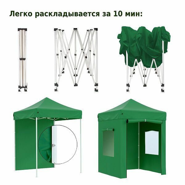 Тент садовый HELEX быстросборный с боковыми стенками 4 кв.м зеленый 4220