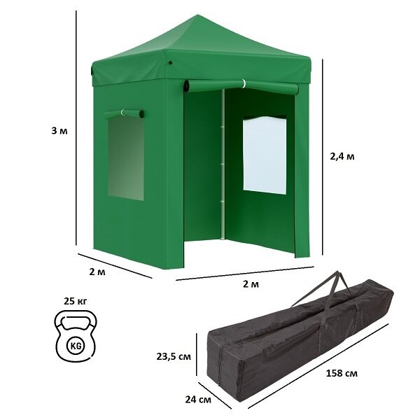 Шатер Helex 4220, со стенками, 2 х 2 х 3 м зеленый