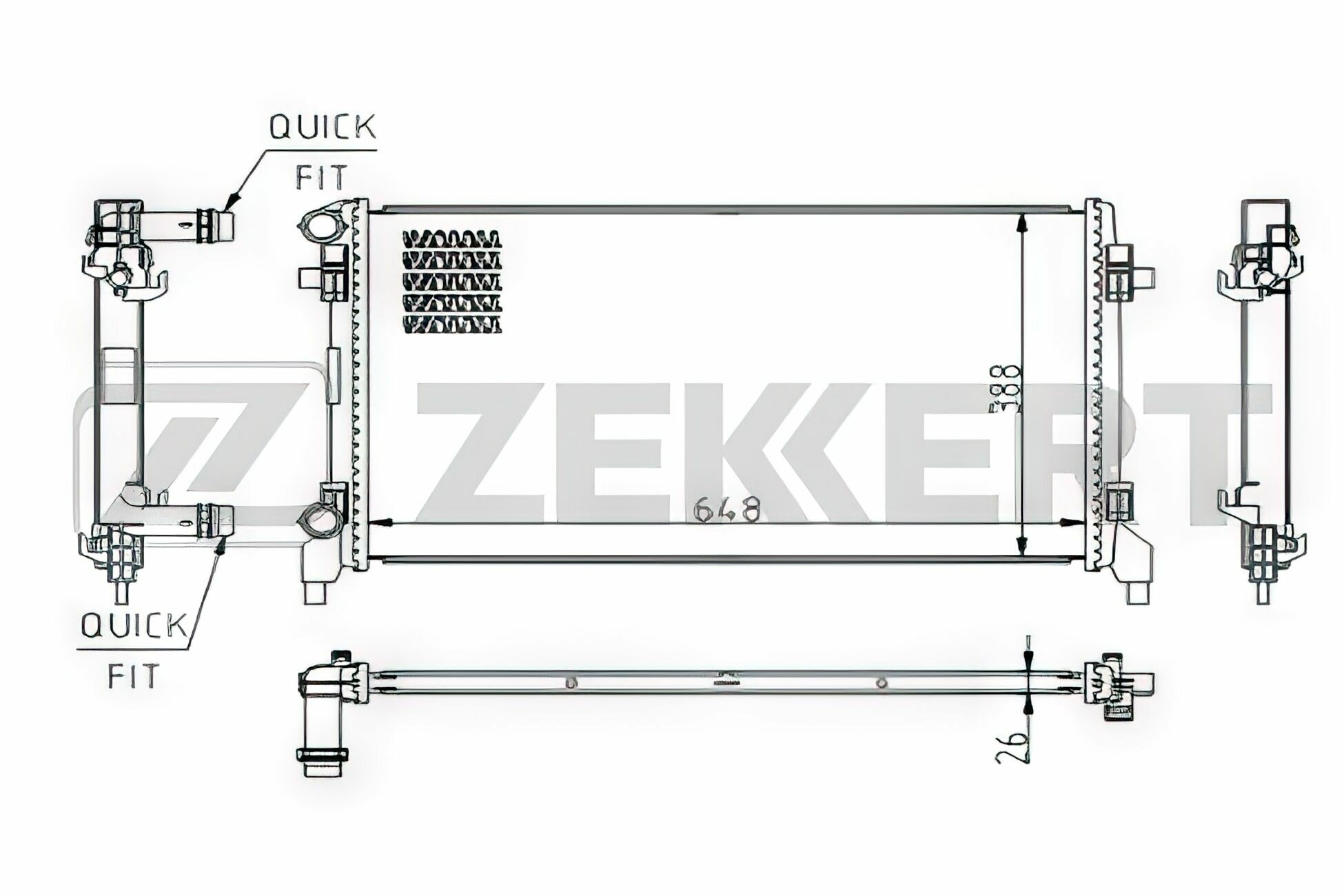 ZEKKERT MK-1606 Радиатор охлаждения двигателя Skoda Fabia (NJ_) 15- Yeti (5L) 14- Karoq (N_7) 17- Octavia (5E_ N
