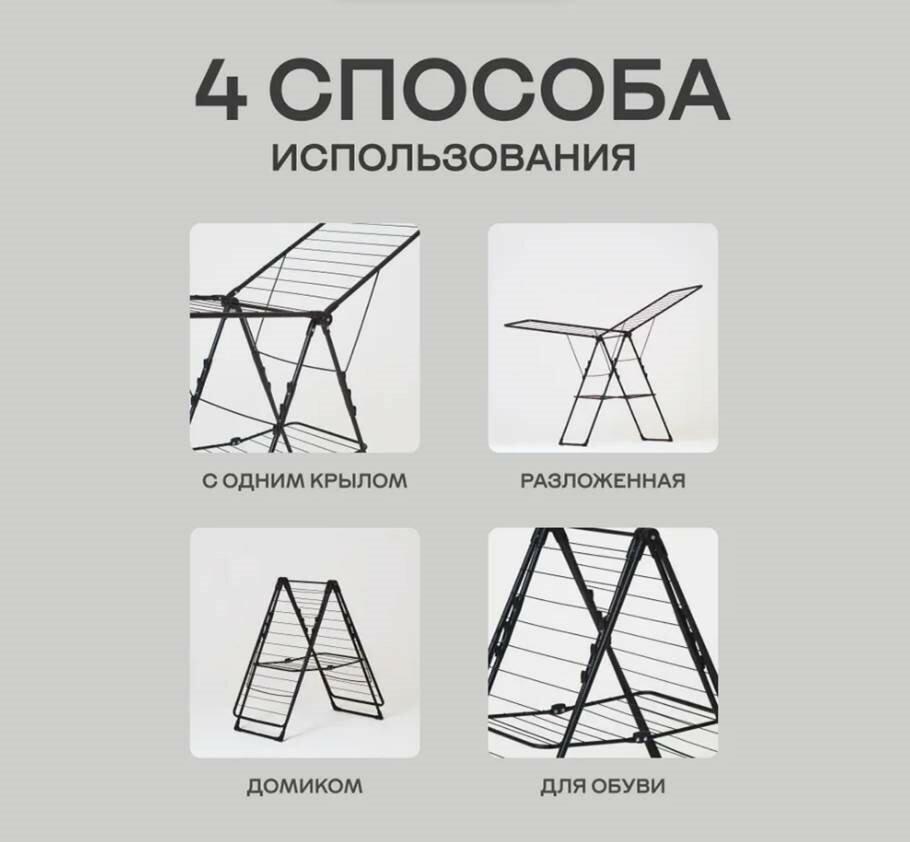 Большая сушилка для белья напольная, складная 21м (хозяйственные товары), чёрная