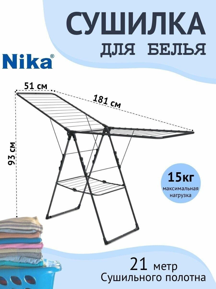 Сушилка для белья напольная Nika, сушильное полотно 21 м, серебро