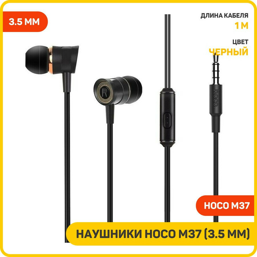 Наушники вкладыши с микрофоном Hoco M37 Pleasant Black, мобильная гарнитура, черные