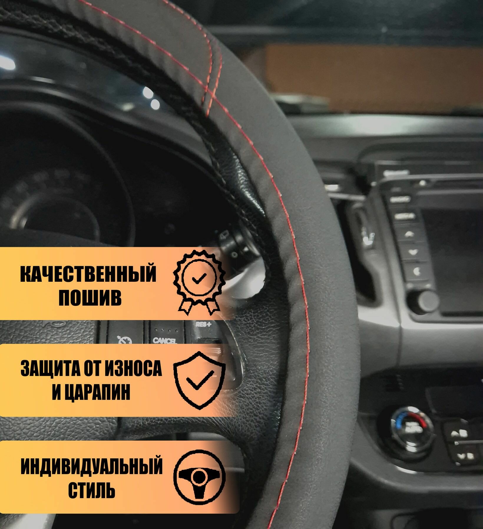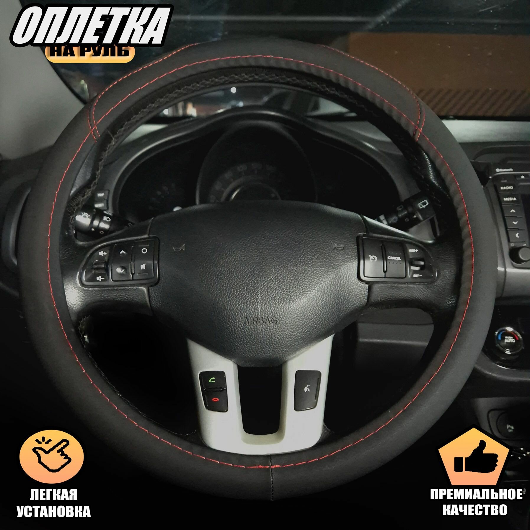 Оплетка, чехол (накидка) на руль Фольксваген Пассат (2014 - 2020) седан / Volkswagen Passat, экокожа, Черный с красным интересное: