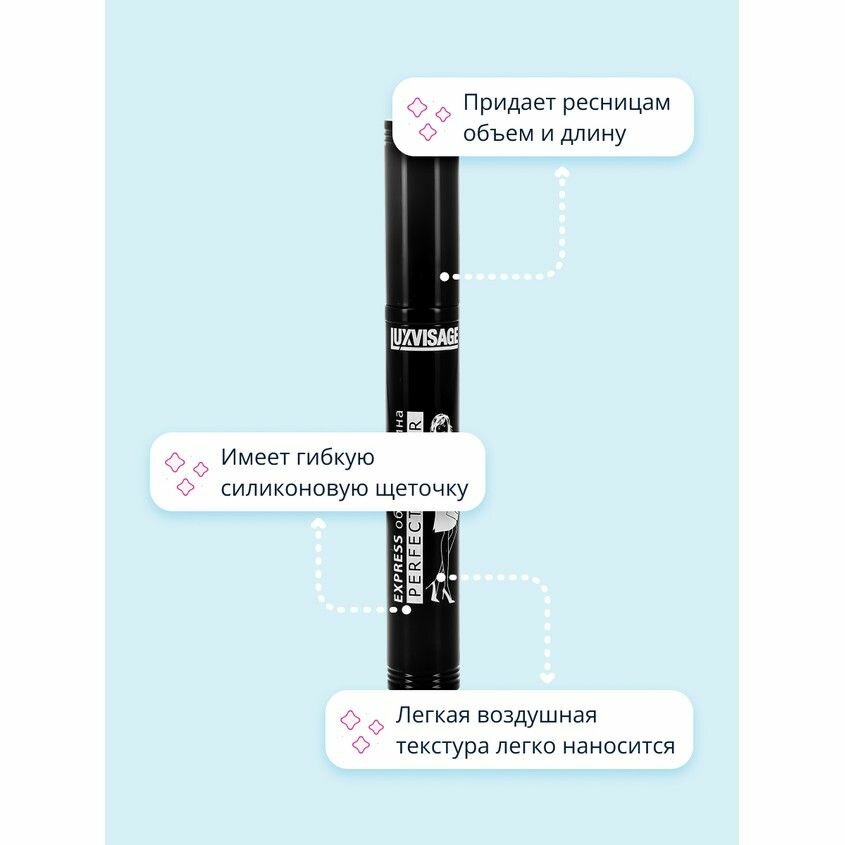 LUXVISAGE / Люксвизаж Тушь для ресниц Perfect Color Express черная с силиконовой щеточкой 9г / средство для удлинения и объема