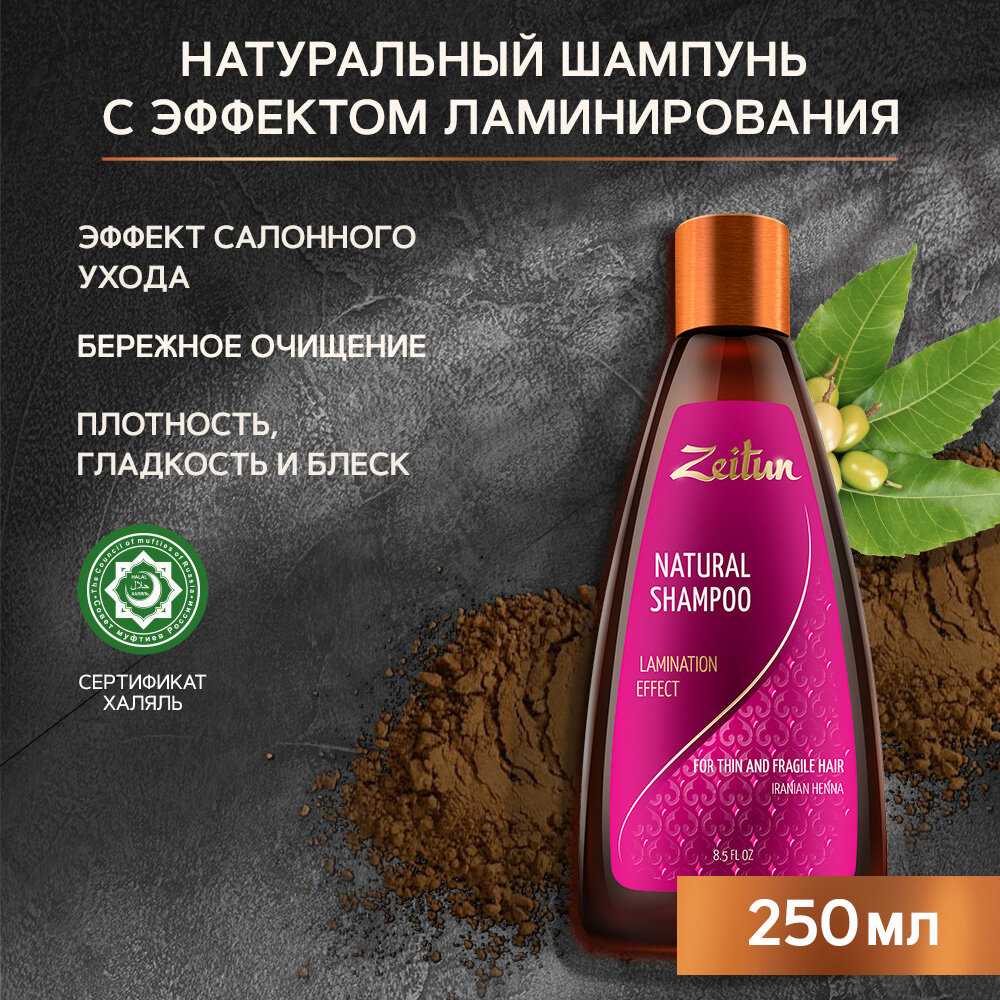 Шампунь для волос Zeitun Эффект ламинирования, для тонких волос с иранской хной, 250 мл .
