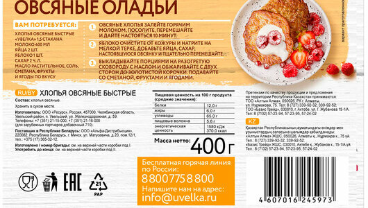 Увелка Хлопья овсяные быстрые, 400 г, 6 шт интересное:
