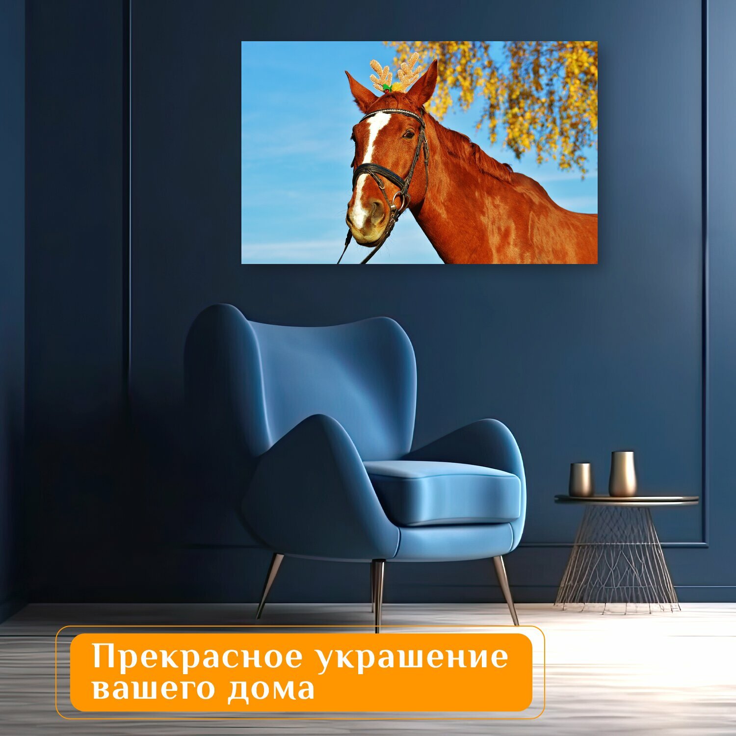 Купить Картина на холсте "Лошадь, рождество, веселье" на подрамнике 120х75 см. для интерьера