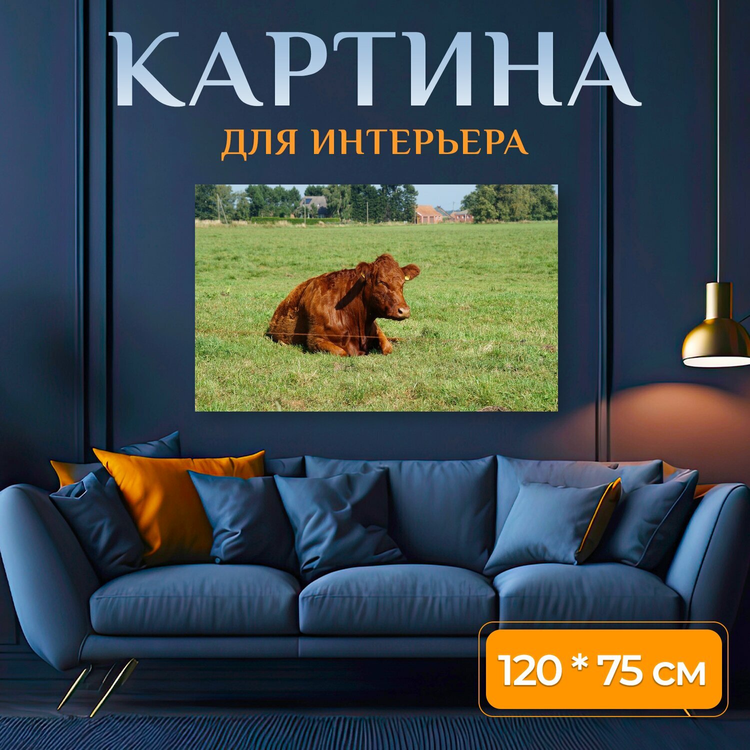 Картина на холсте "Говядина, животное, коричневый" на подрамнике 120х75 см. для интерьера интересное: