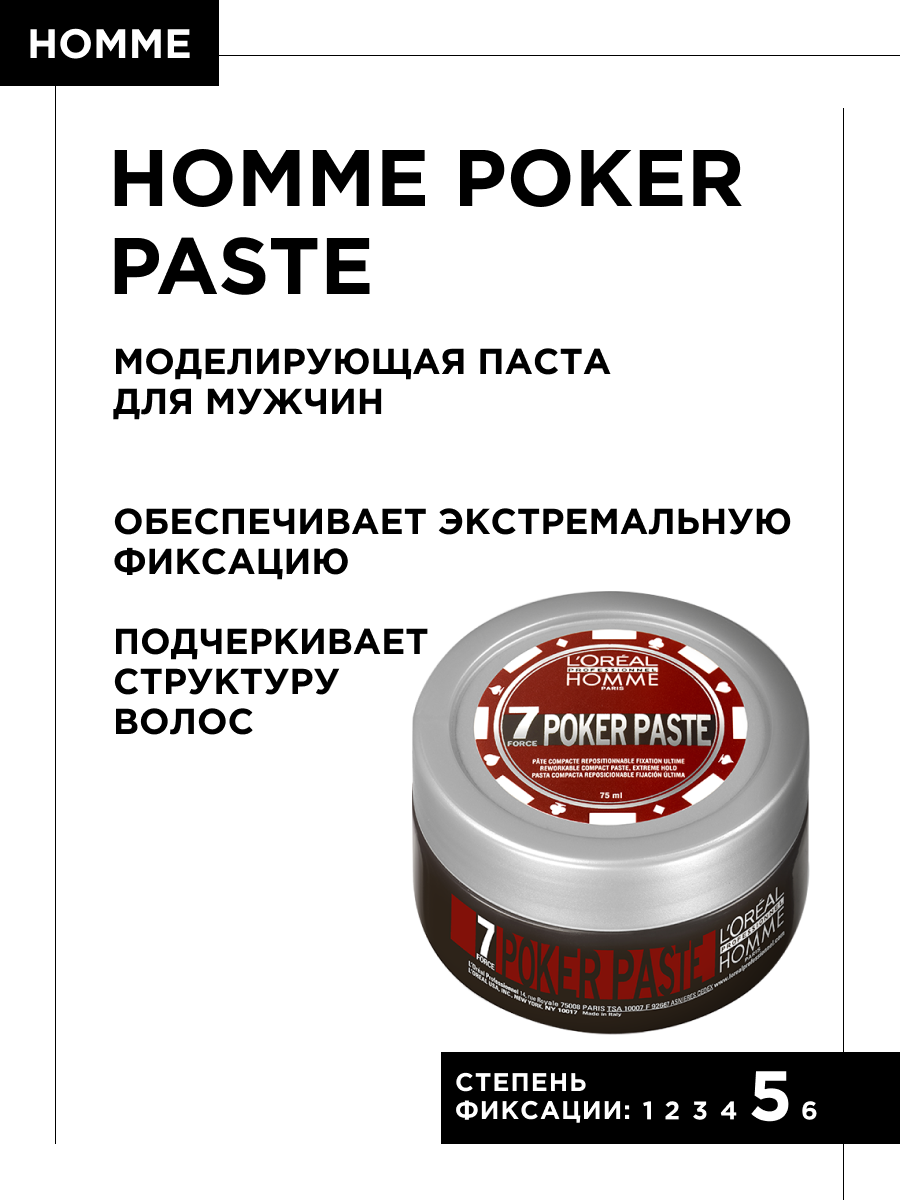 L'Oreal Professionnel Паста моделирующая Homme Poker Paste экстремальной фиксации, 75 мл. Экстра-сильная фиксация.