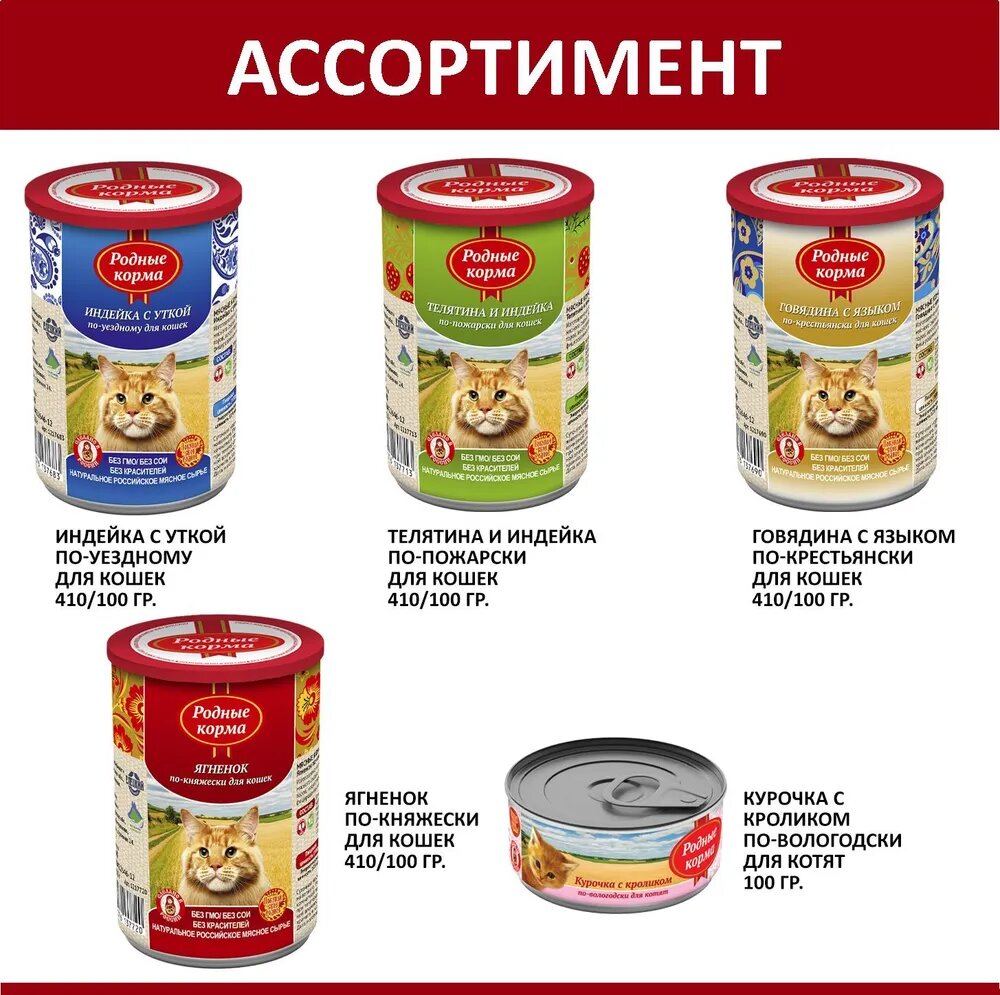 Родные корма Консервы для кошек ягненок по-княжески 64559 0,41 кг 34200 (10 шт)