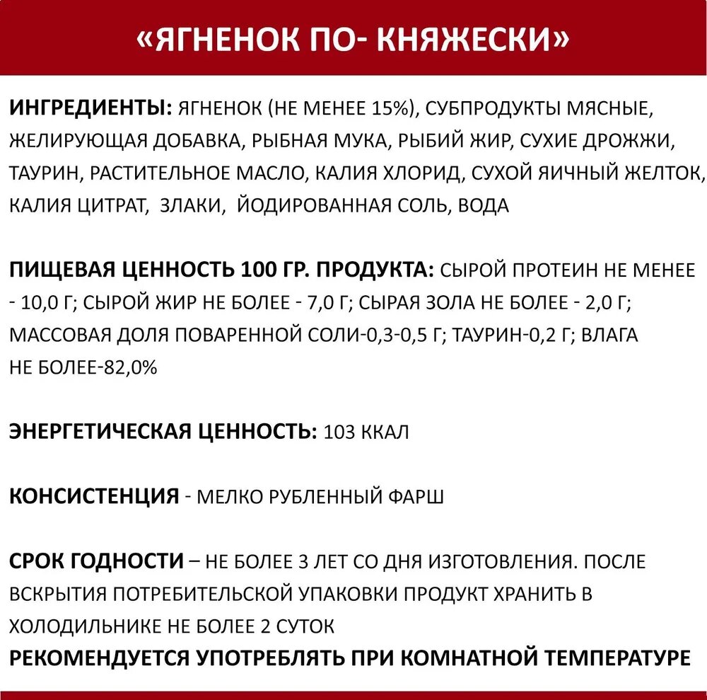 | Вкус | ягненок |
