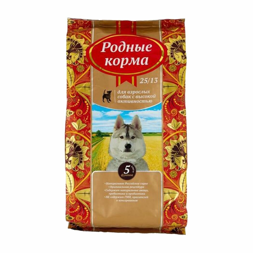 Родные Корма Сухой корм для взрослых собак 25/13 5 русских фунтов с высокой активностью, 2,045 кг