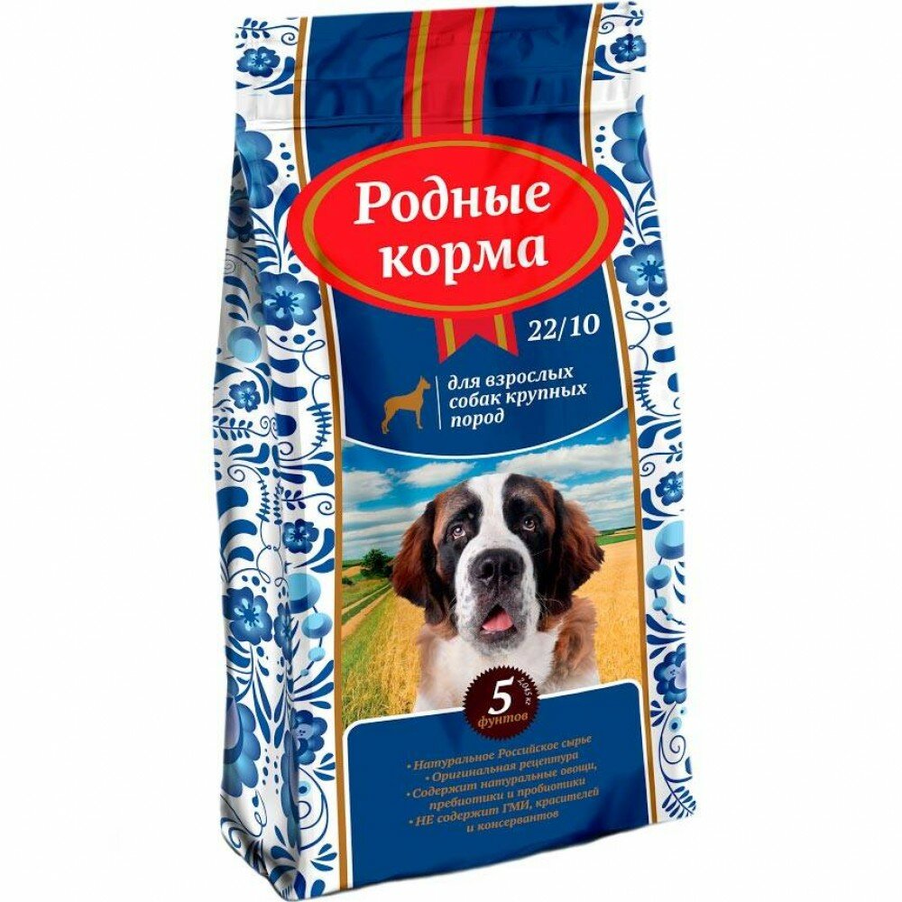 Cухой корм для взрослых собак крупных пород, родные корма 22/10 5 русских фунтов 2,045 кг