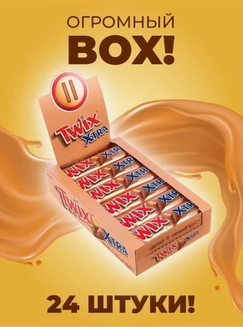 Батончик Twix Xtra, 82 г, коробка, 24 шт.