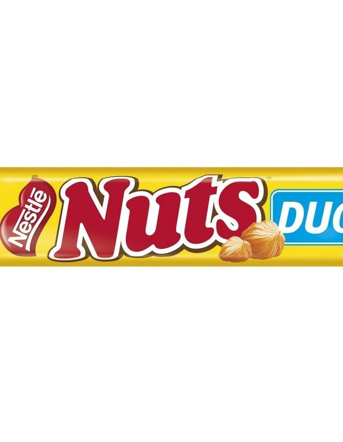 Батончик шоколадный, "Nuts Duo", с цельным фундуком, карамелью и нежной нугой, 66г 24 шт