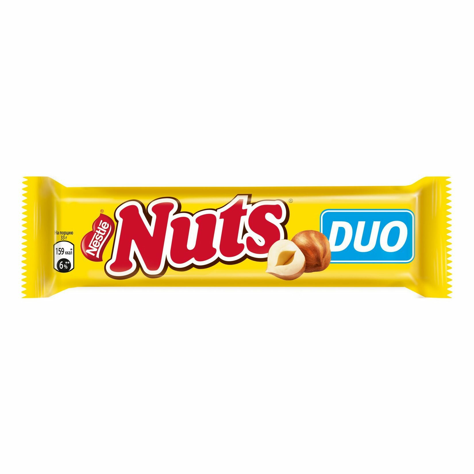 Батончик шоколадный, "Nuts Duo", с цельным фундуком, карамелью и нежной нугой, 66г 6 шт