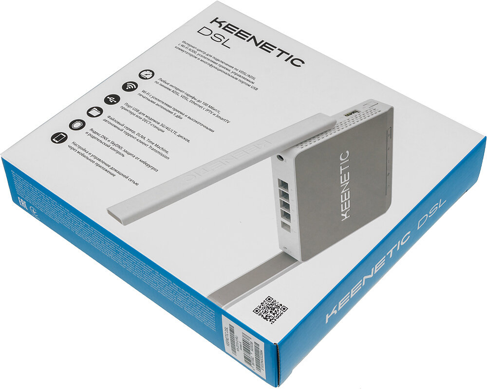 Wi-Fi роутер Keenetic DSL Интернет-центр с модемом VDSL2/ADSL2+, Mesh Wi-Fi N300, 4-портовым Smart-коммутатором и портом USB