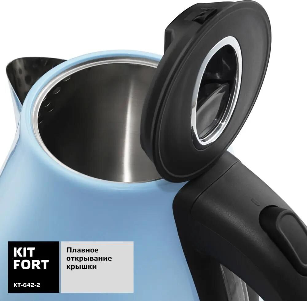Чайник KITFORT KT-642-2 2200 Вт голубой чёрный 1.7 л металл/пластик