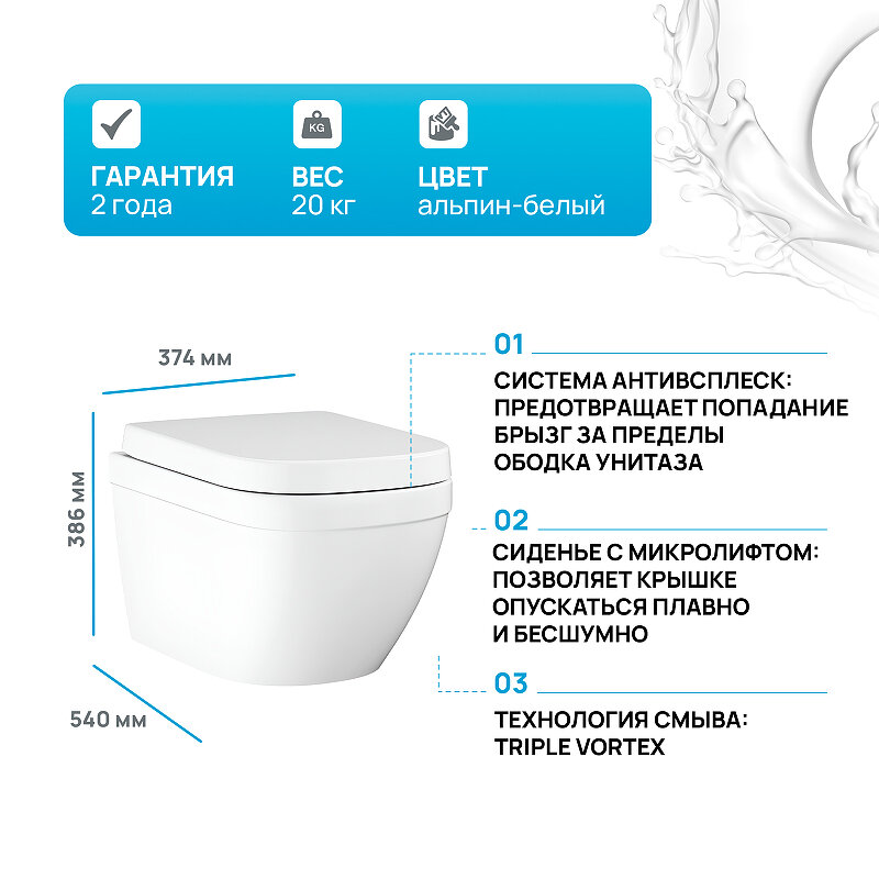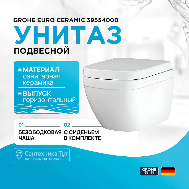 Унитаз подвесной, GROHE Euro Ceramic, с сиденьем, альпин-белый, (39554000)