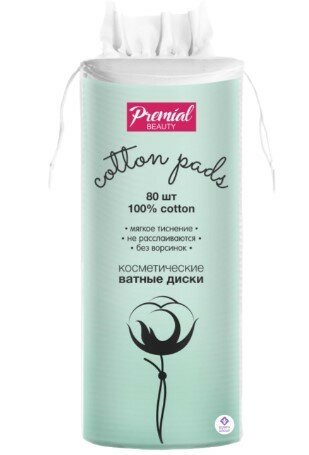 Premial ватные диски косметические, 80 шт