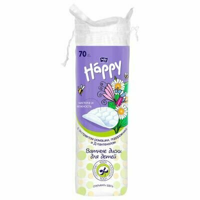 Ватные диски bella baby Happy с экстрактом ромашки, подорожника и Д-пантенолом по 70шт