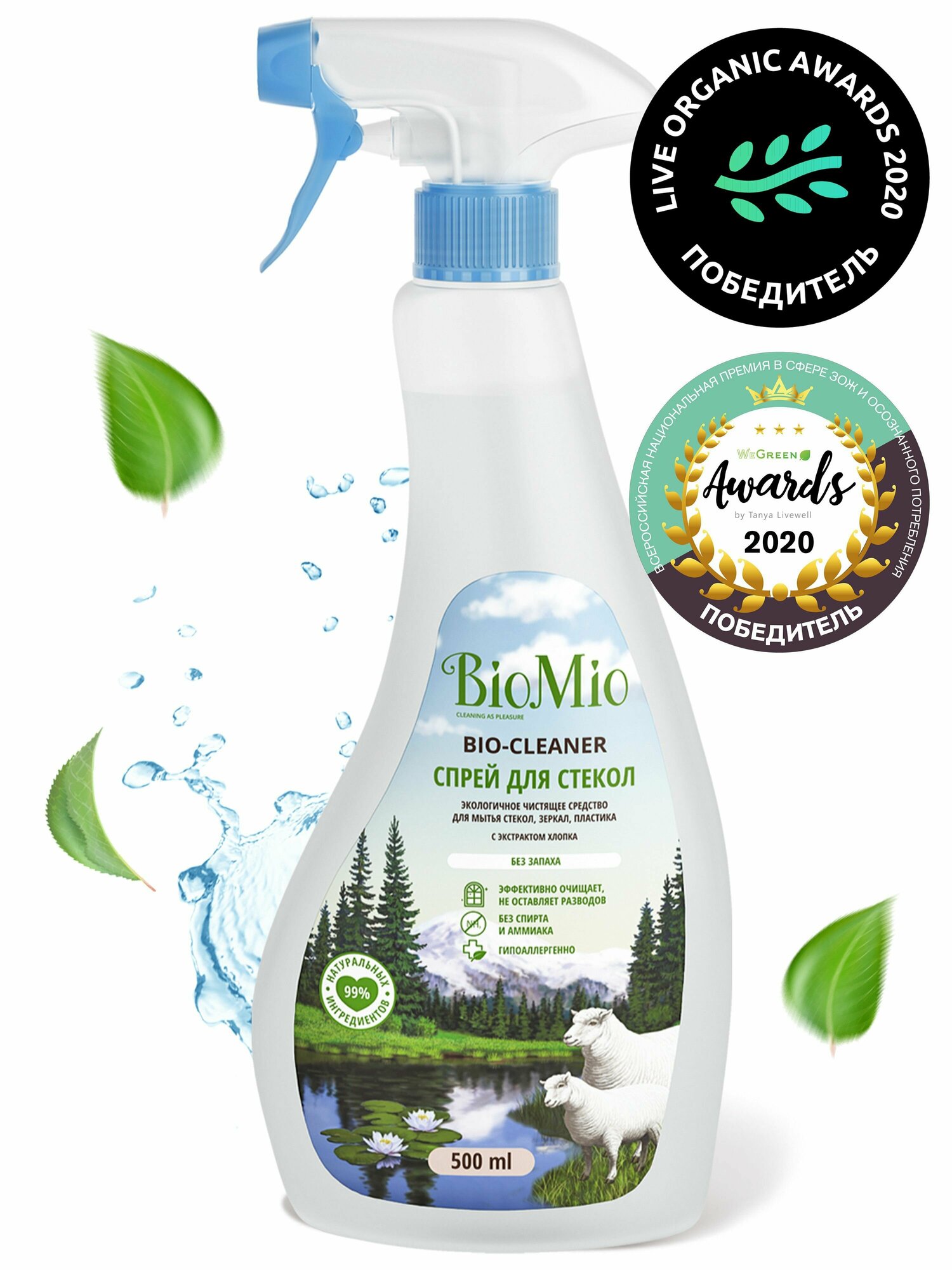 Чистящий спрей Biomio BIO-GLASS CLEANER для стекол, зеркал, пластика, без запаха, 500 мл