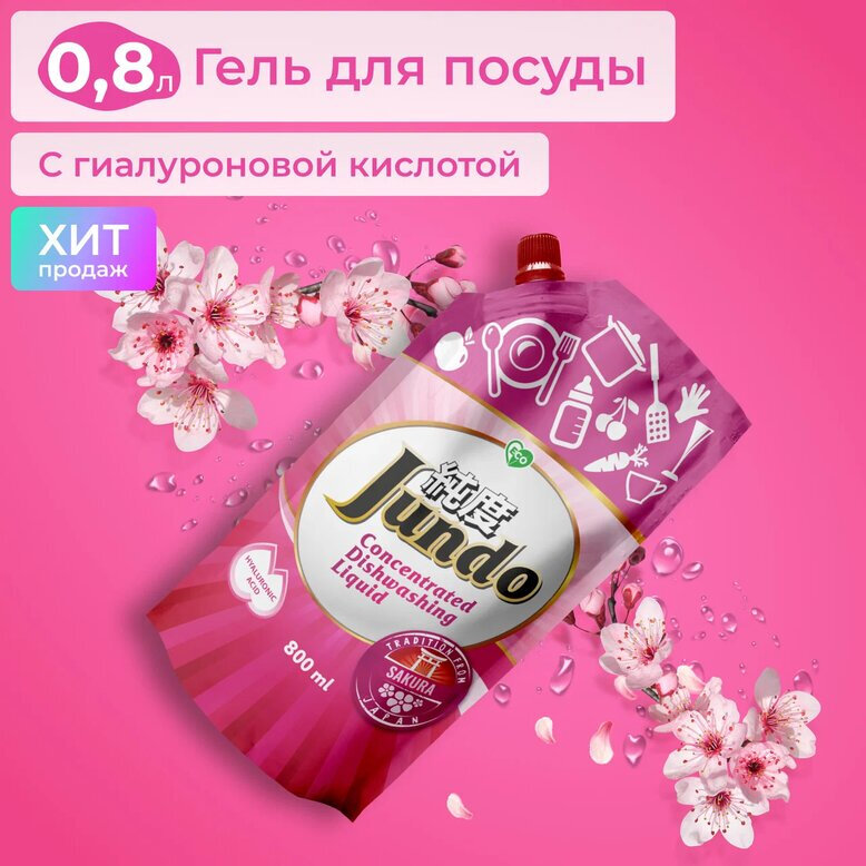 Гель для мытья посуды Jundo Sakura Сакура, концентрированный, 800 мл, м/у