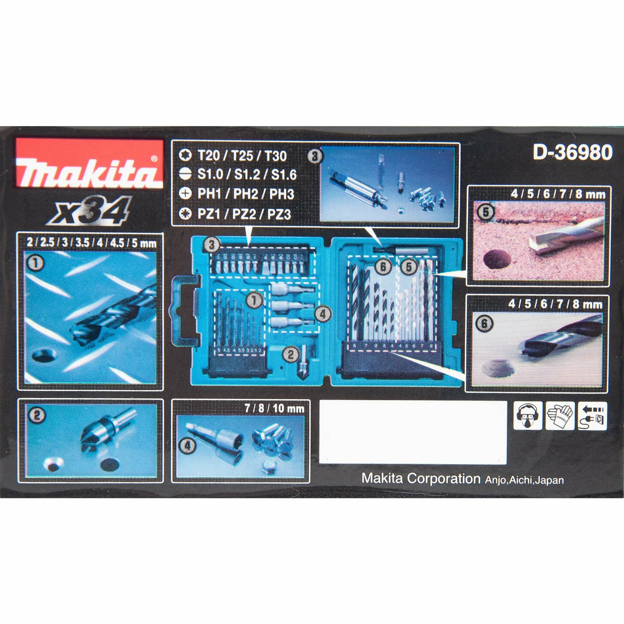 Набор свёрл и бит Makita D-36980, 34 шт.