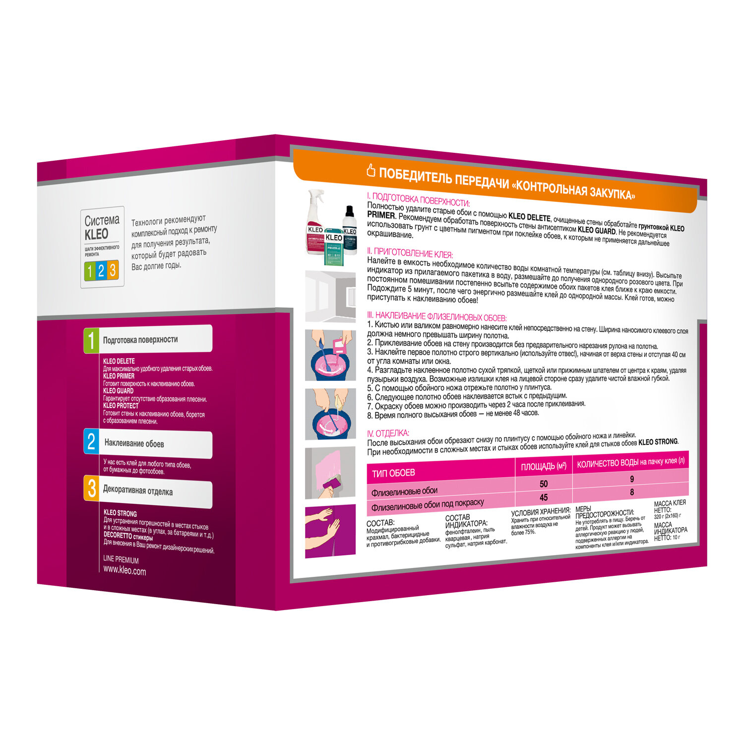 Клей обойный для флизелиновых обоев с индикатором KLEO EXTRA, 320 гр, 45 кв.м.