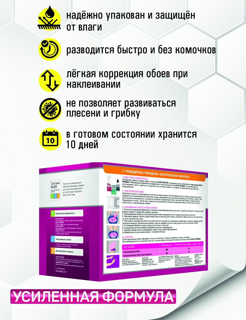 Клей для стыков обоев KLEO STRONG 80 усиленная формула для виниловых, флизелиновых, бумажных обоев, антигрибковая и антисептическая формула Клео Экстра