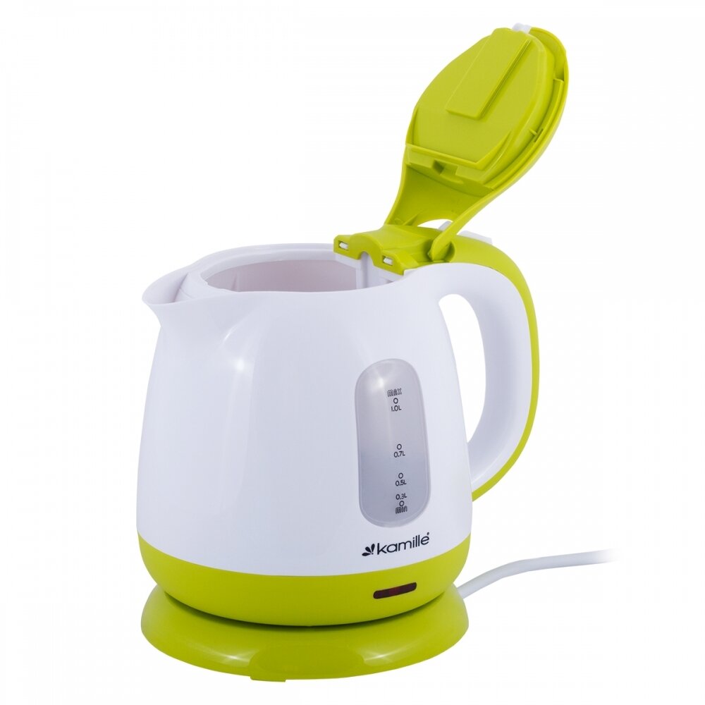 Чайник электрический Kamille 1л электрический пластиковый (белый c салатовым)