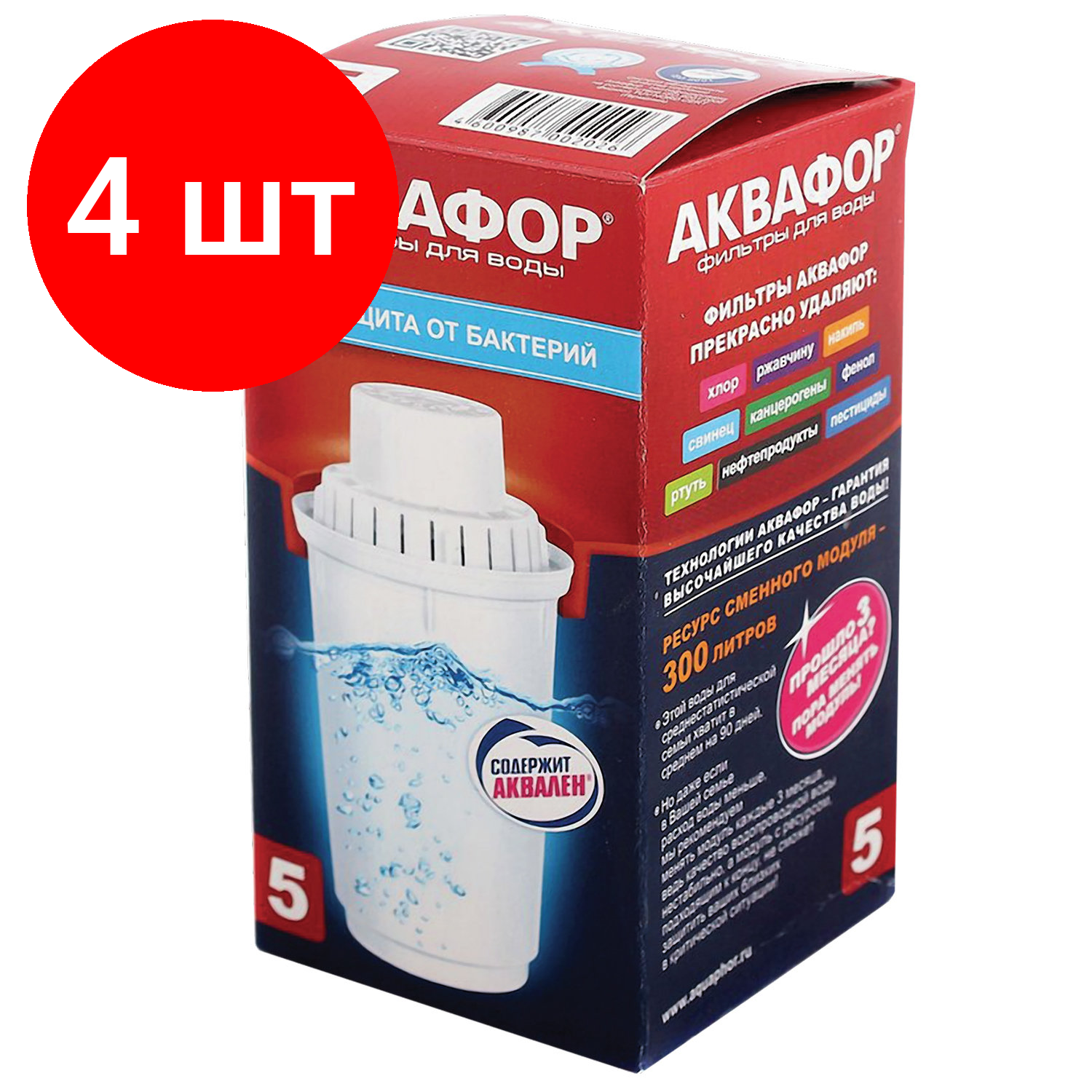 Аквафор B5 (В100-5) модуль для фильтра-кувшина, комплект из 4 шт.