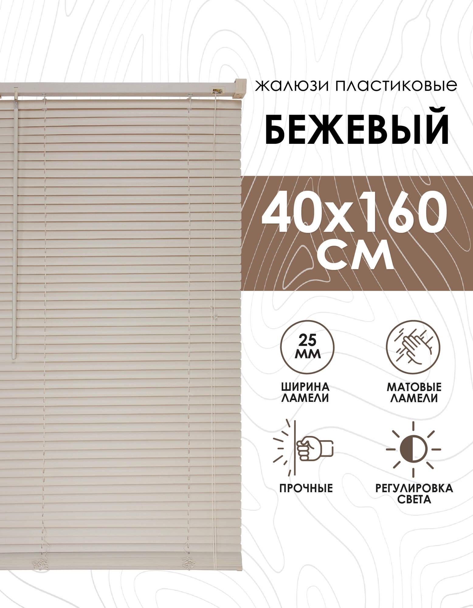 Жалюзи горизонтальные Эскар, 40х160 см, пластик, бежевый