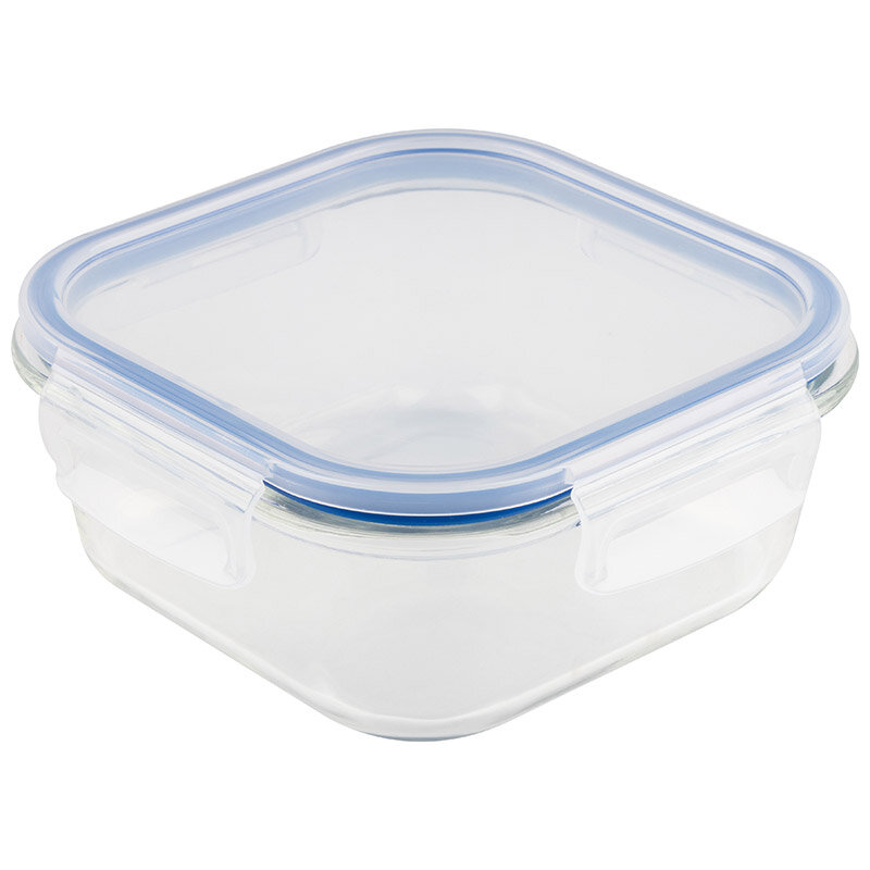 Контейнер 0.8 л из жаропрочного стекла для хранения и разогрева еды в СВЧ с крышкой на защелках из пластика Размеры: 16,1х16,1х6,9 см