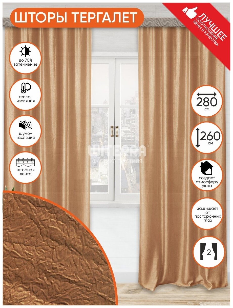 СохранитьКомплект штор портьерных Witerra Тергалет 140х260см 2 шт, св.-коричневый, пэ100% интересное: