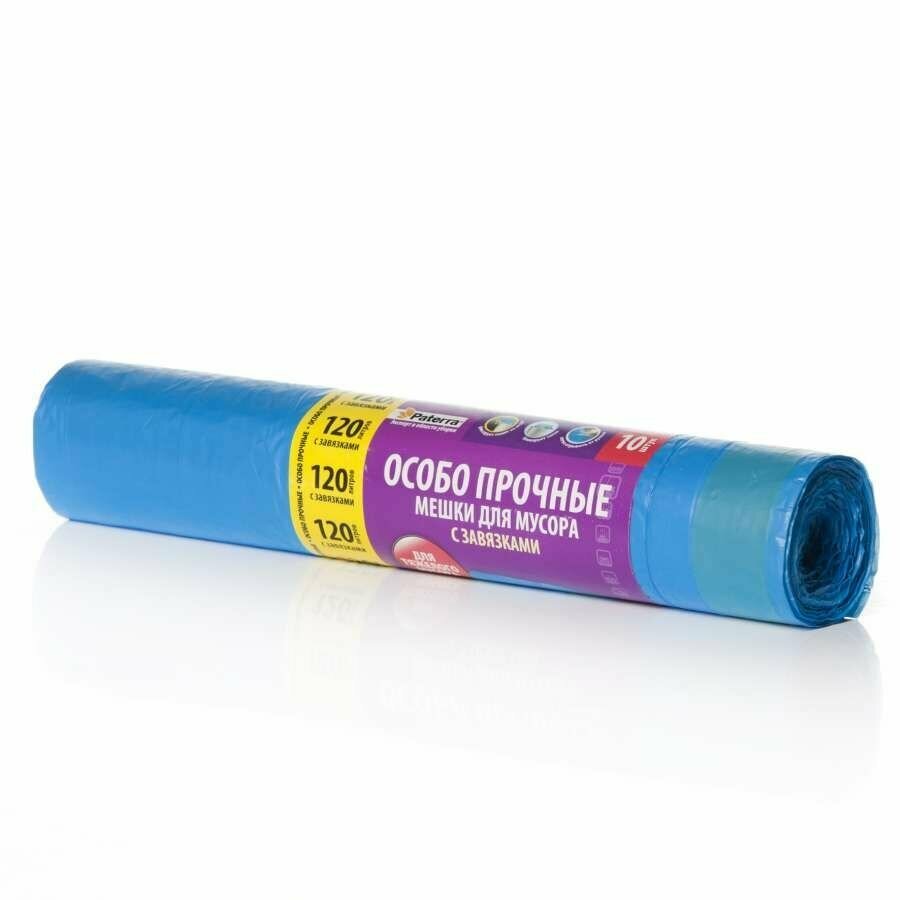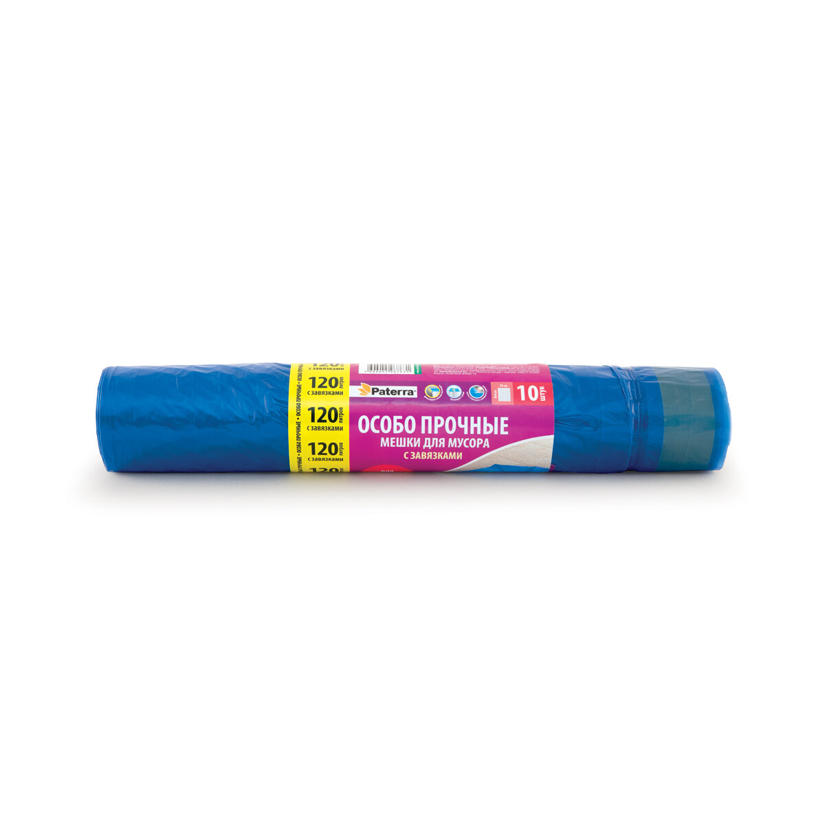 Мешки для мусора Paterra, объем 120 л с завязками, цвет синий, в рулоне 10 шт