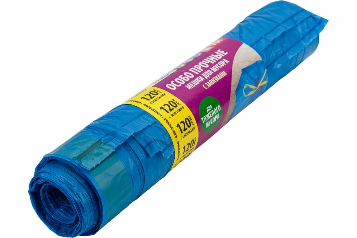 Мешки для мусора Paterra, объем 120 л с завязками, цвет синий, в рулоне 10 шт. интересное: