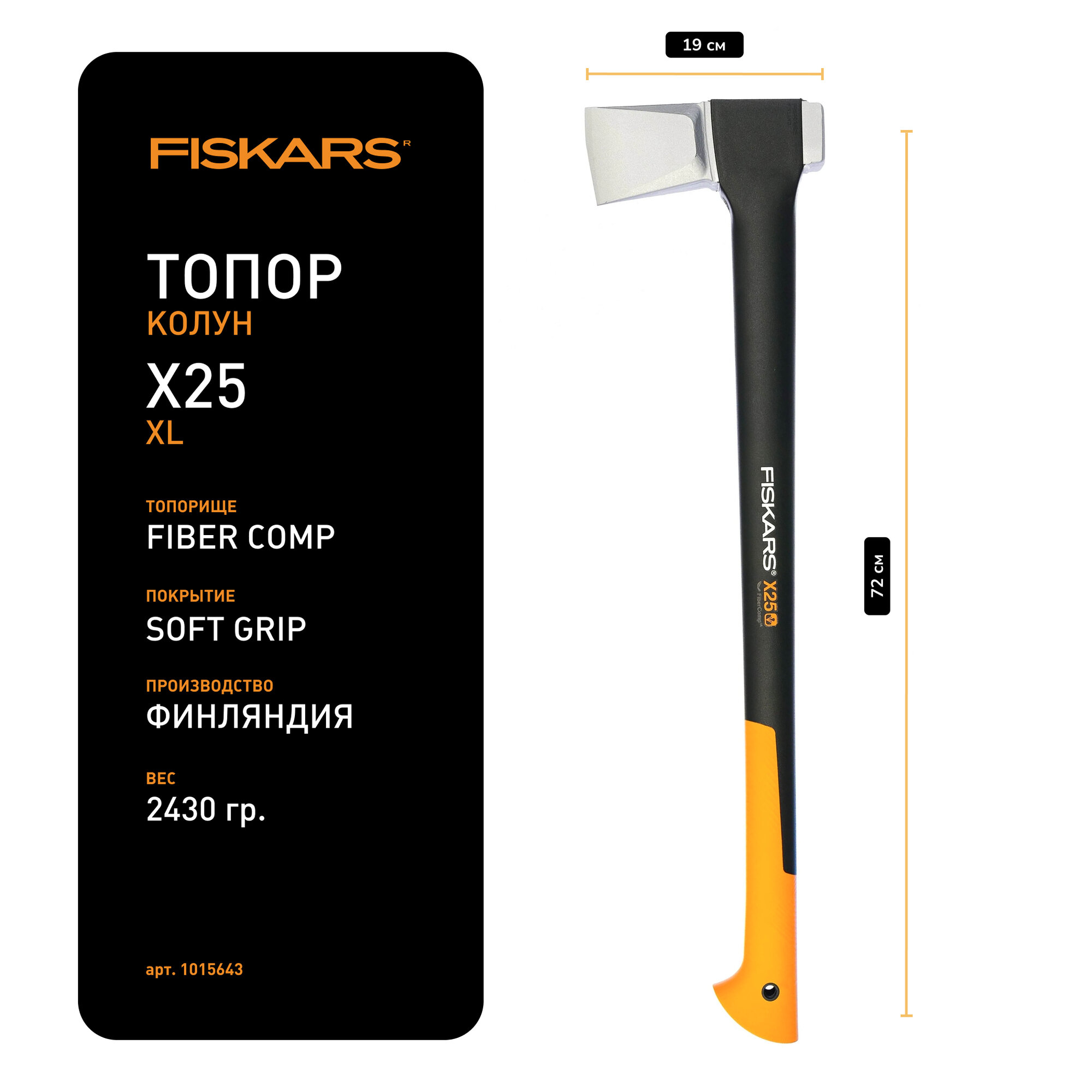 Колун FISKARS X25 черный/оранжевый