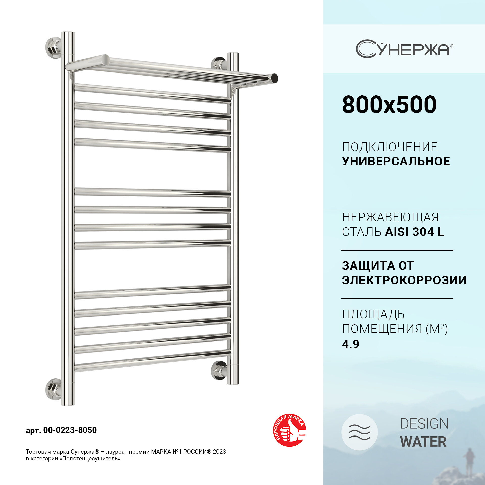 Водяной полотенцесушитель Сунержа Богема с полкой+ 800x500 сатин арт. 071-0223-8050