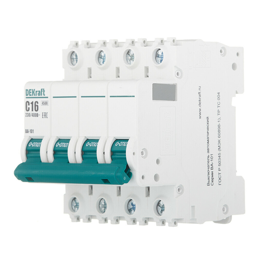 Выключатель автоматический четырехполюсный 16А С ВА-101 4.5кА | код 11090DEK | DEKraft ( 1шт. )
