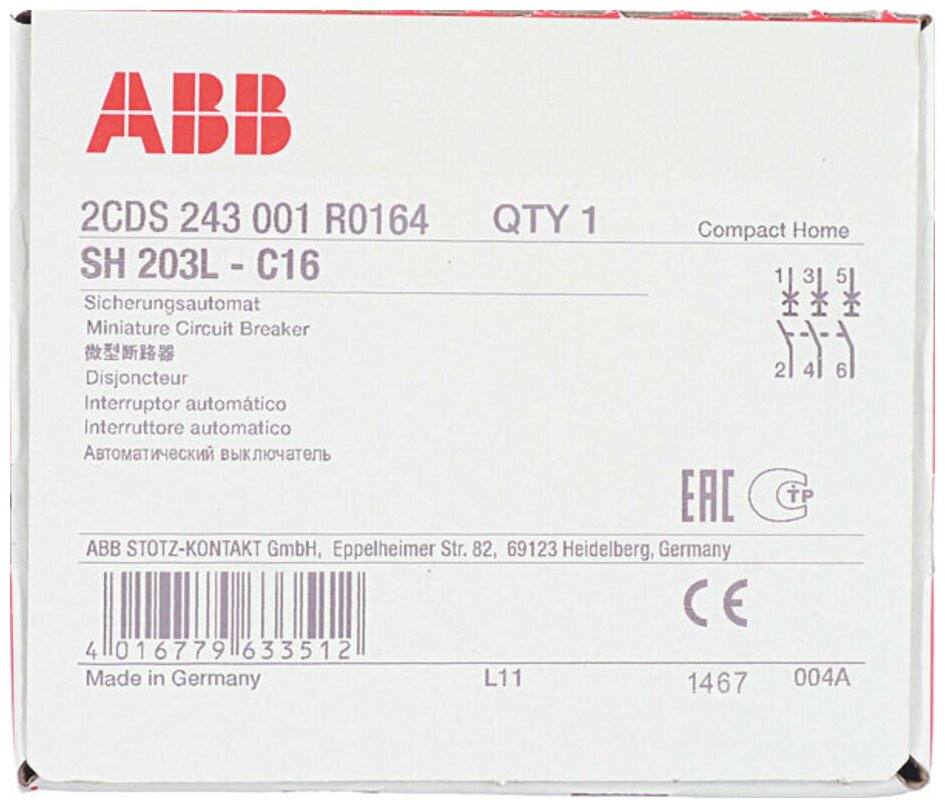 Ниже Вы можете прочитать отзывы на Автомат.выключ. ABB 3п 16А C SH203L 4.5кА 2CDS243001R0164, ознакомится с подробными характеристиками, посмотреть интересные обзоры и фотографии на Автомат.выключ. ABB 3п 16А C SH203L 4.5кА 2CDS243001R0164.