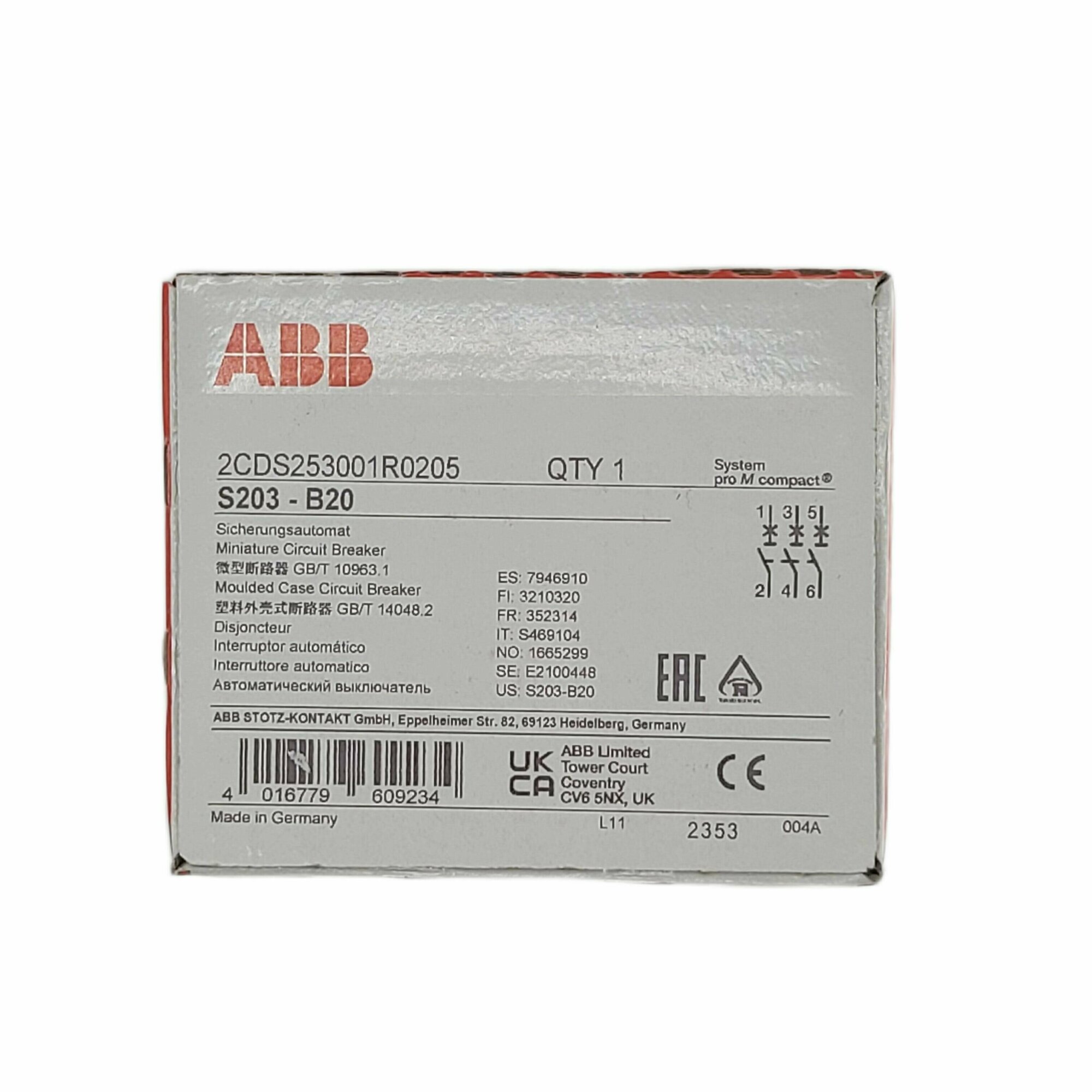 ABB Выключатель автоматический 3-полюсной S203 B20
