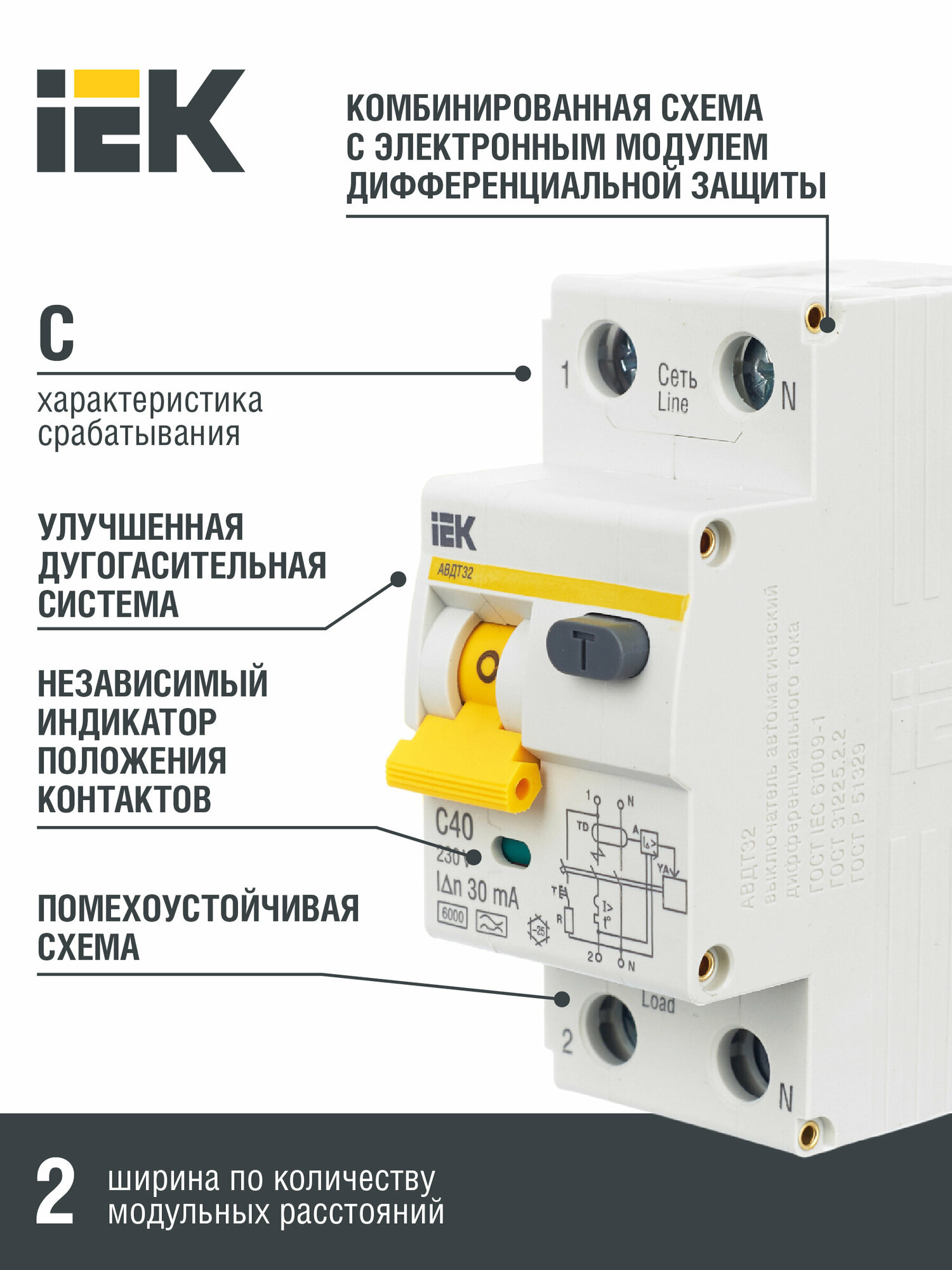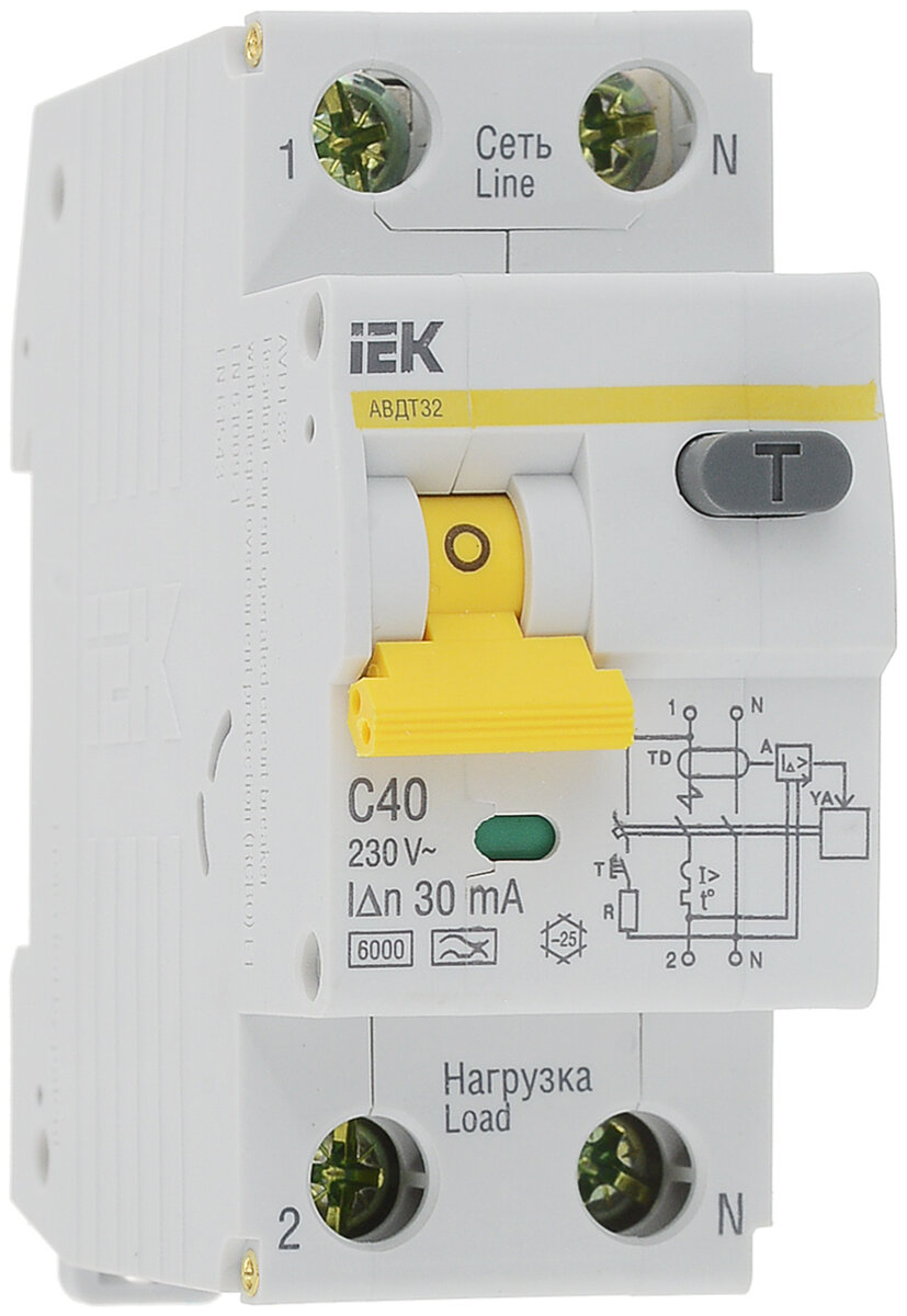 Дифференциальный автомат IEK АВДТ 32 2П 30 мА C 6 кА A электронный 40 А