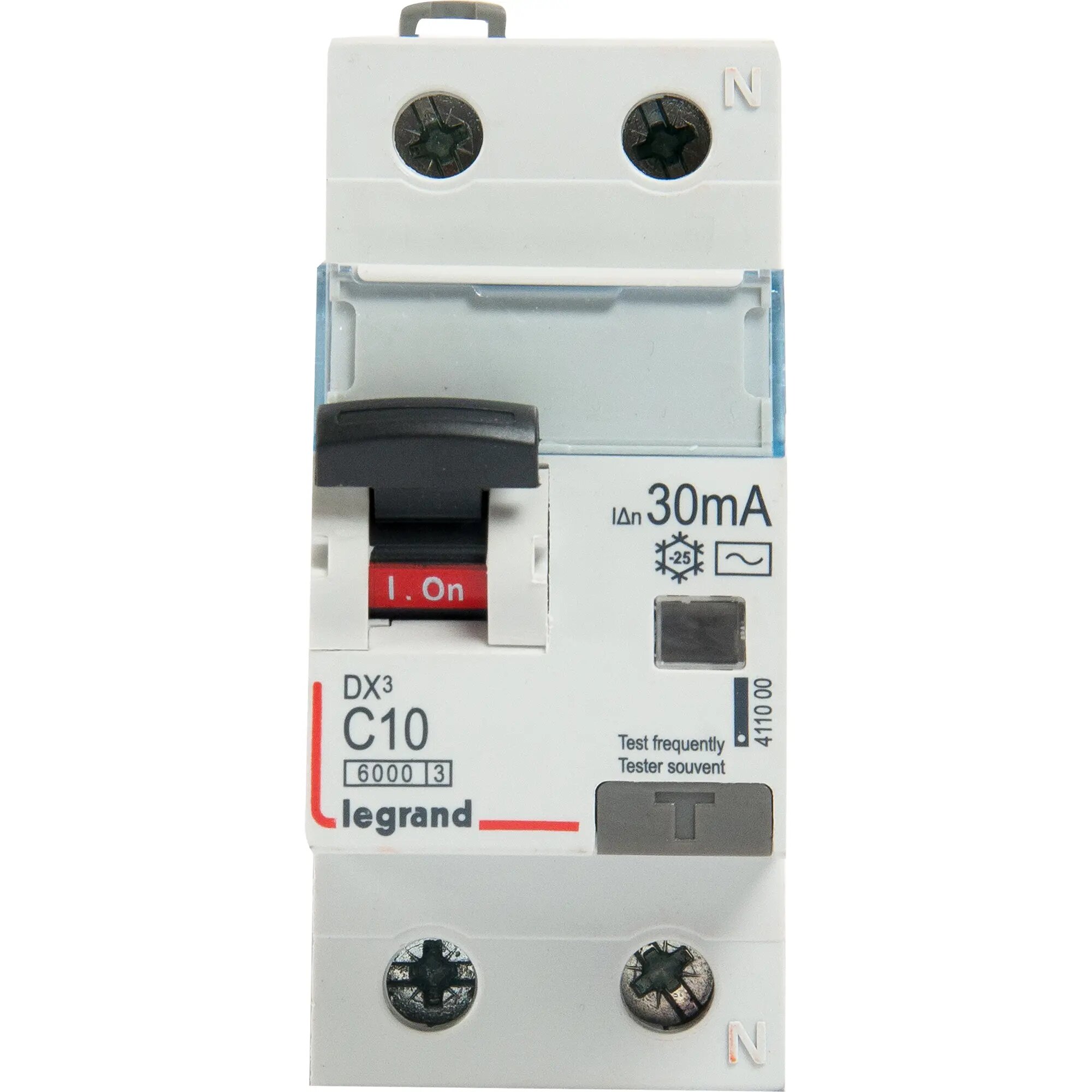 Купить DX3 дифференциальный автоматический выключатель 1P+N, 10A, 30mA, тип АC, 10kA (хар-ка C) Legrand, 411000