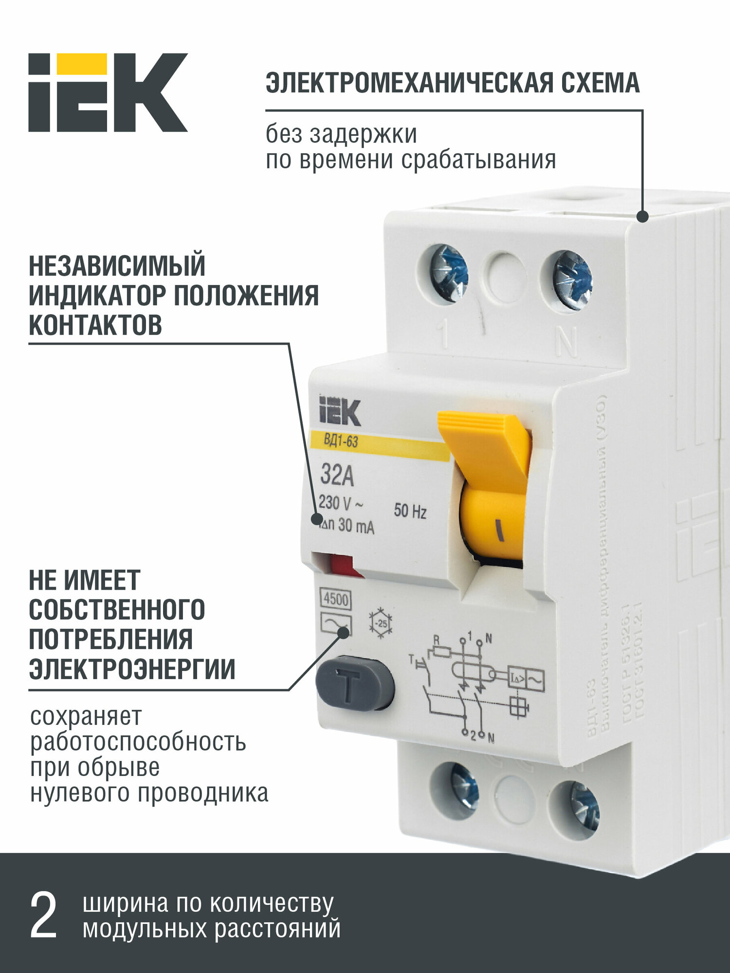 СохранитьУстройство защитного отключения Иэк ВД 1-63, 2p, 32А/30мА интересное: