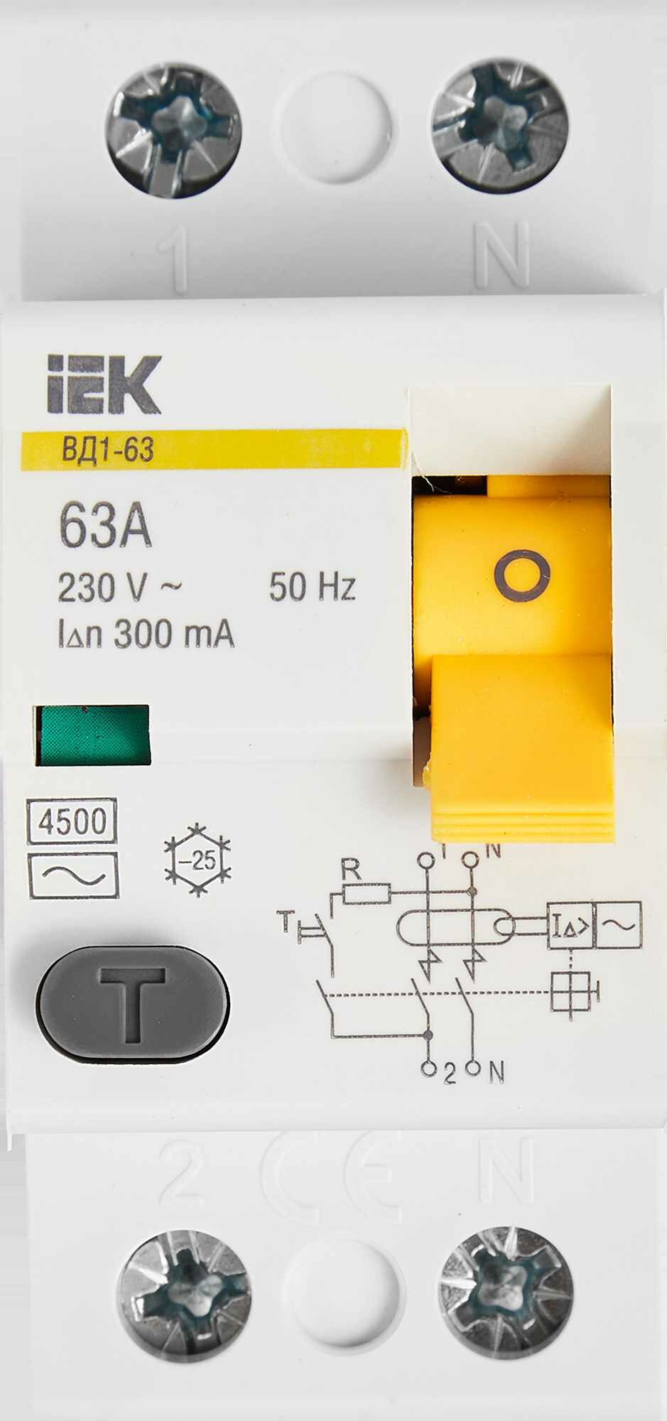 Выключатель дифференциальный (УЗО) ВД1-63 2Р 63А 300мА IEK