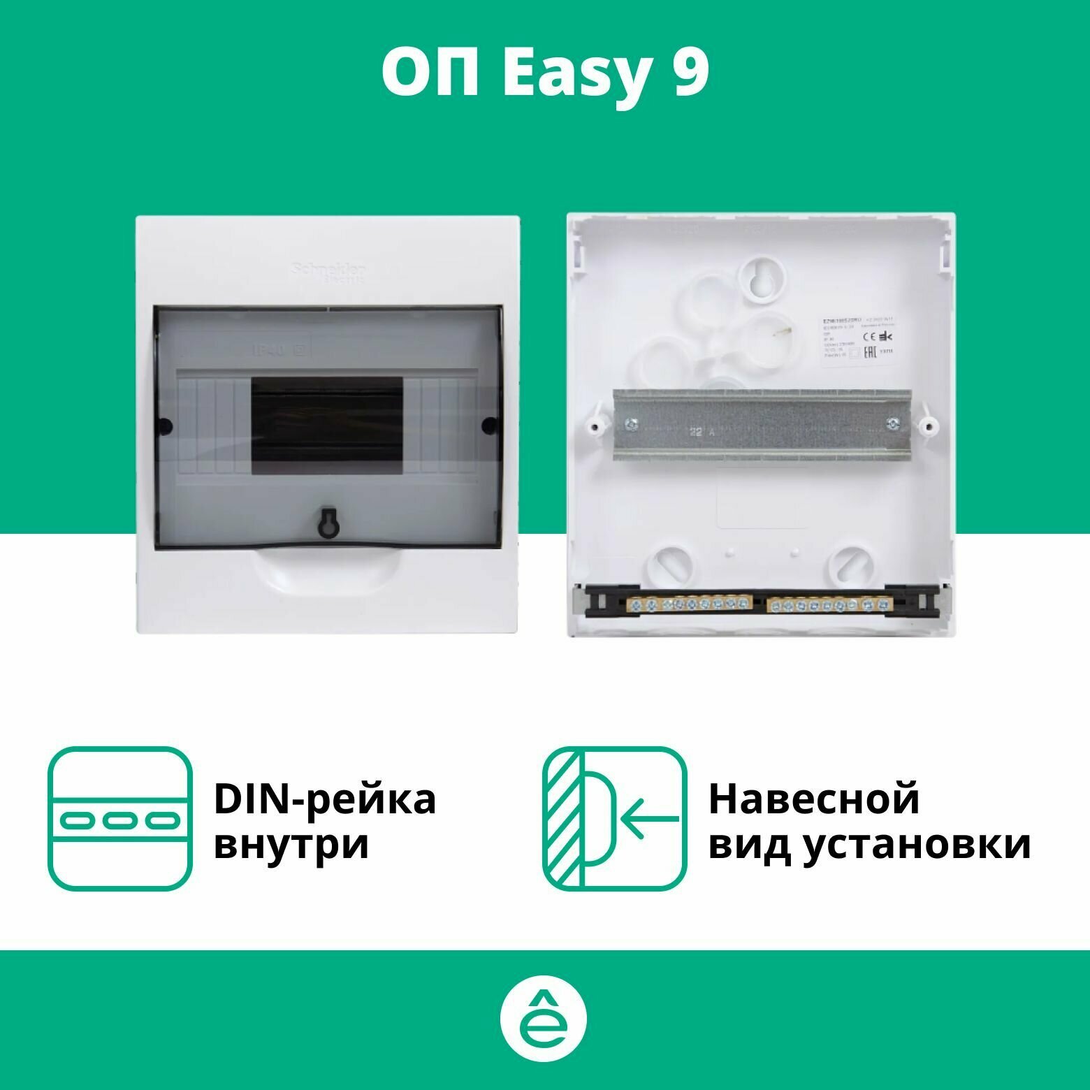 SE EASY 9 Корпус навесной с прозрачной дверью 1ряд/12мод, IP40, IK07, 63А, 2 клеммы