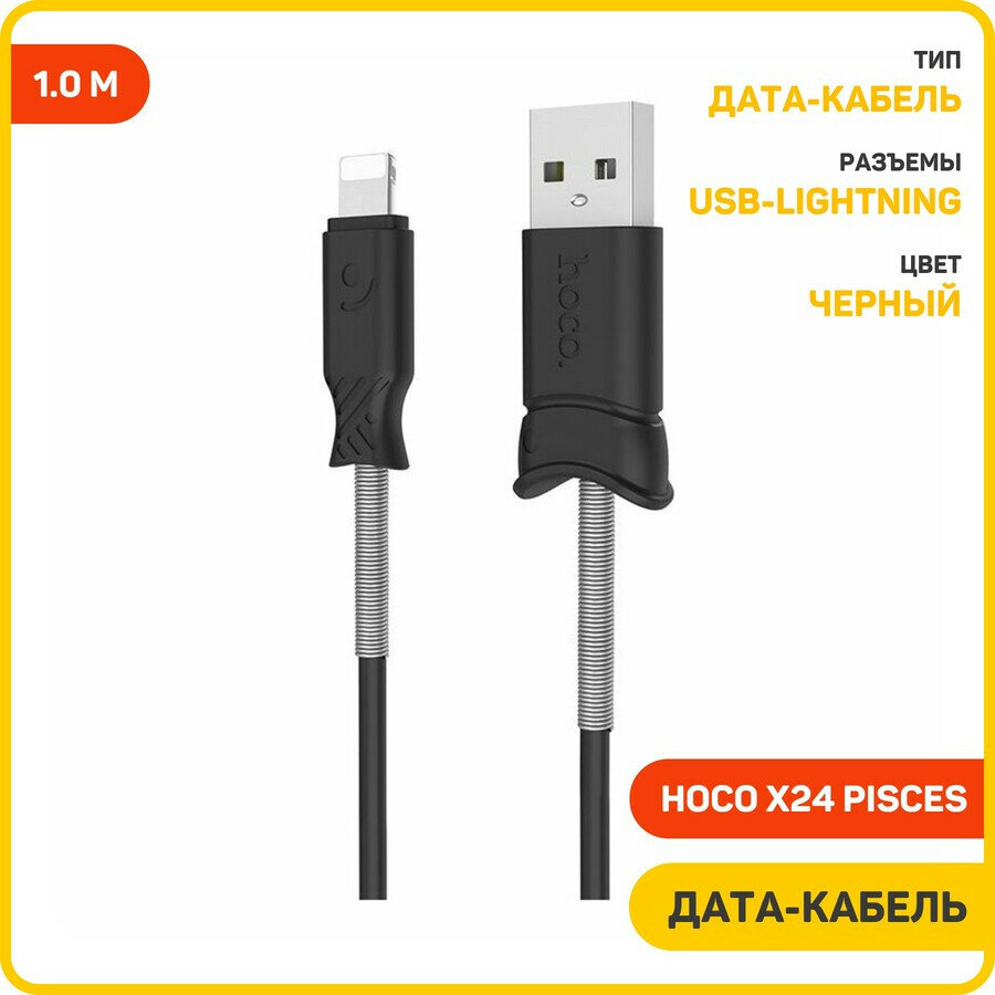 Кабель USB HOCO X24 Pisces, USB - Lightning, 2.4А, 1 м, черный
