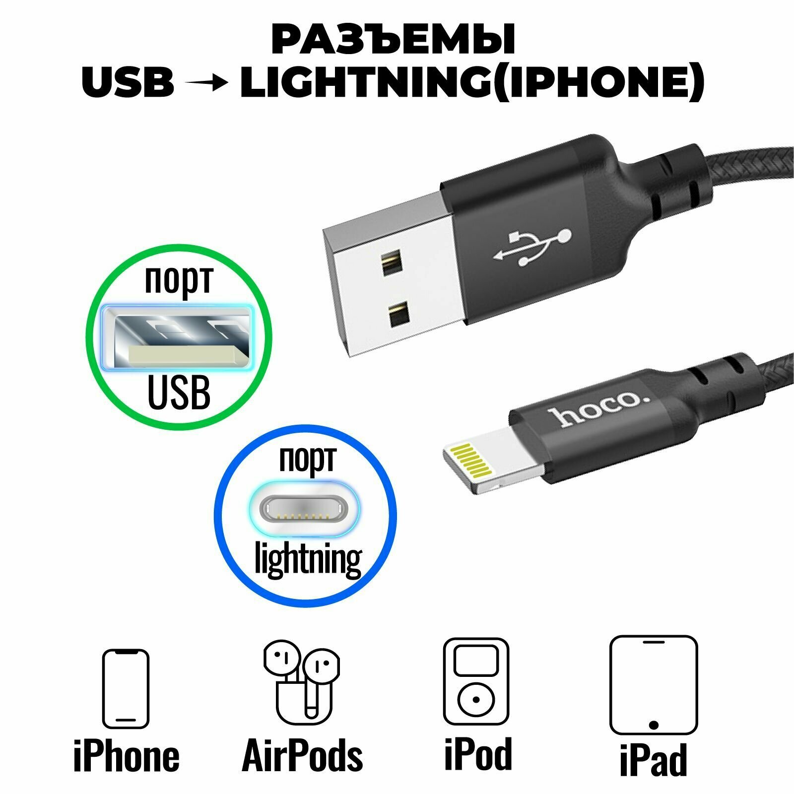 | Разъемы кабеля | USB 2.0 (am) - Apple Lightning (m) |