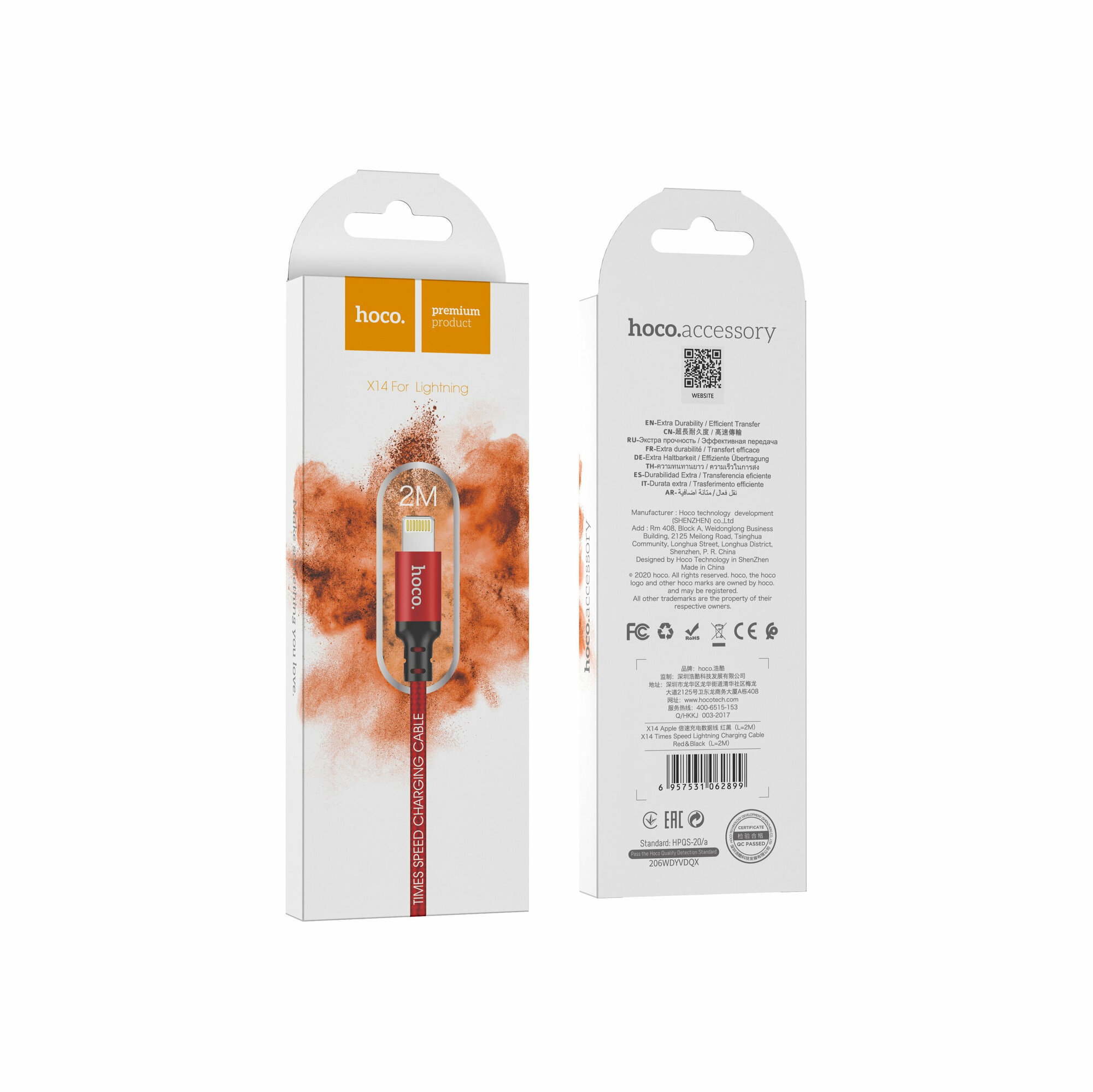 USB Ligntning кабель hoco 6957531062899 X14, черно-красный 2.0m